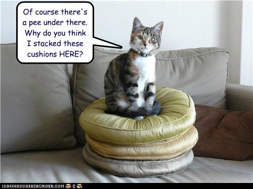Of course there's a pee under there. Why do you think I stacked these cushions HERE?