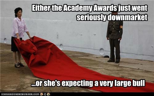 Either the Academy Awards just went seriously downmarket ...or she's expecting a very large bull