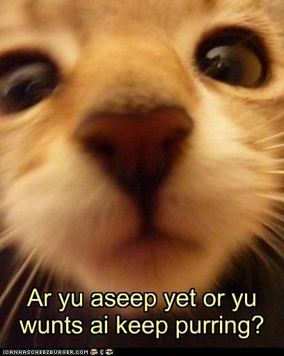 Ar yu aseep yet or yu wunts ai keep purring?