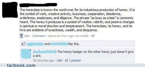 I'm sure you've all seen it, but just in case, this video has some big-people words in it. If you aren't like Honey Badger and get offended by such things, don't watch it. http://www.youtube.com/watch?v=4r7wHMg5Yjg