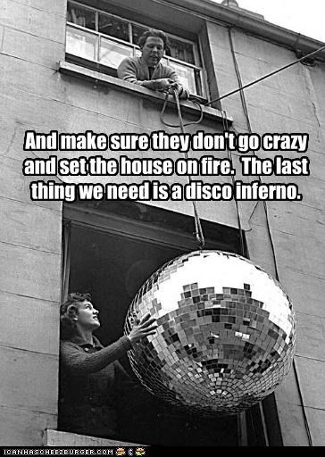And make sure they don't go crazy and set the house on fire. The last thing we need is a disco inferno.