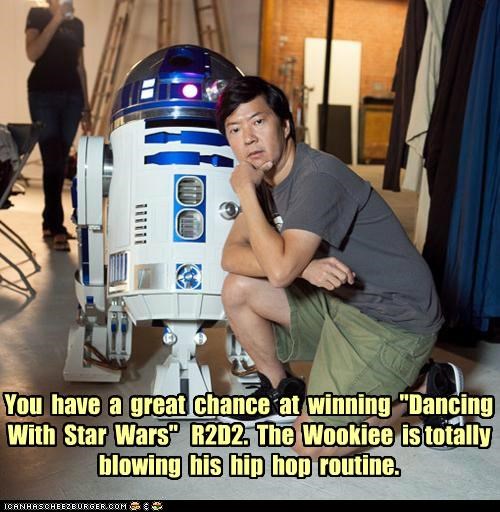 You have a great chance at winning "Dancing With Star Wars" R2D2. The Wookiee is totally blowing his hip hop routine.