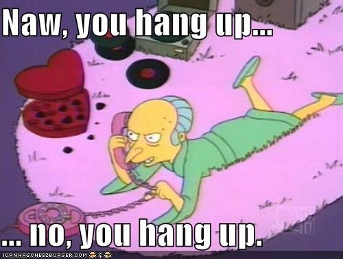 Naw, you hang up...no, you hang up. -The Simpsons