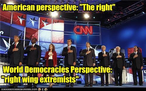 American perspective: "The right" World Democracies Perspective: "right wing extremists"