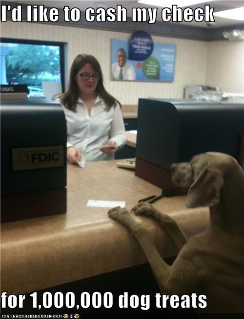 I'd like to cash my check for 1,000,000 dog treats