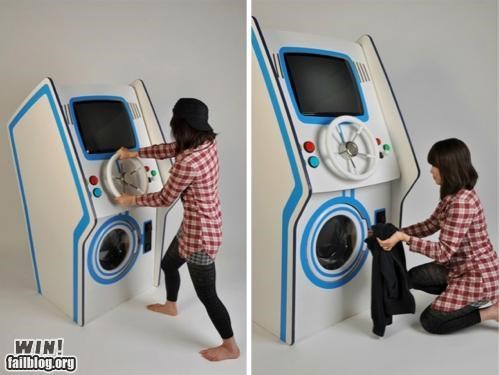 The idea is pretty simple: A combination arcade machine and washing machine. Insert quarters, start your load. When you lose the game, your load stops and you must restart. Check for more details in the via link below!