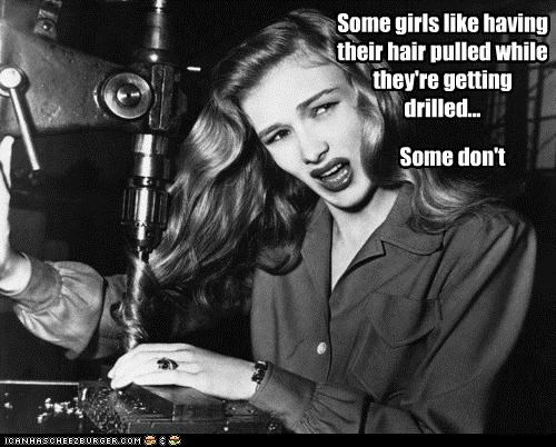 Some girls like having their hair pulled while they're getting drilled...Some don't.