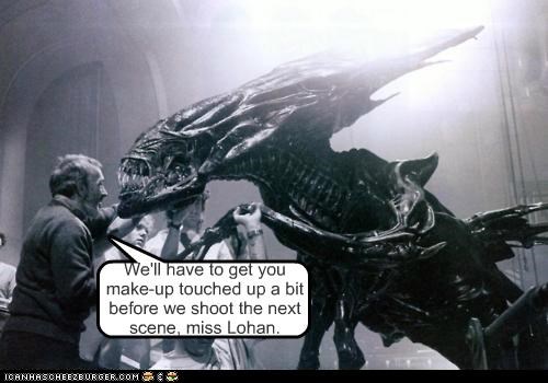 We'll have to get you make-up touched up a bit before we shoot the next scene, miss Lohan. -Aliens