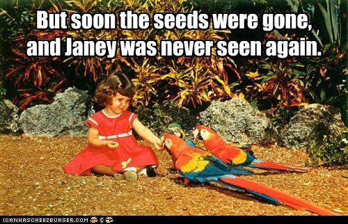 But soon the seeds were gone, and Janey was never seen again.