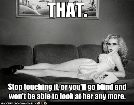 THAT. Stop touching it, or you'll go blind and won't be able to look at her anymore.