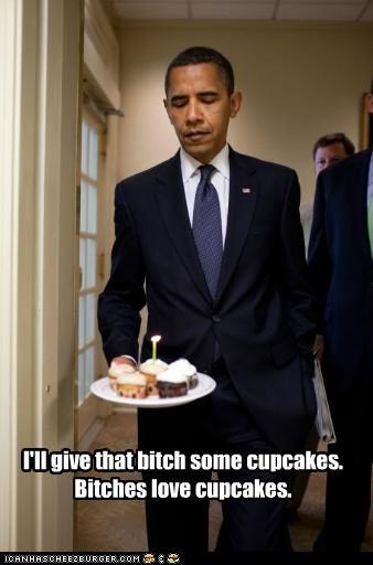 I'll give that b**ch some cupcakes. B**ches love cupcakes. (Barack Obama)