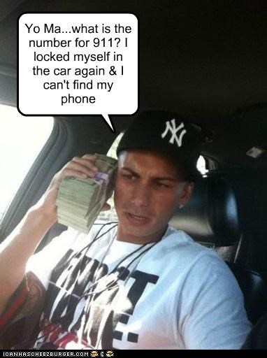 Yo Ma... what is the number for 911? I locked myself in the car again & I can't find my phone (Pauly D, Jersey Shore)