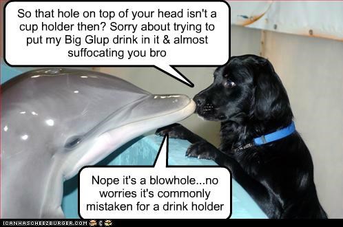 Dolphin: Nopte it's a blowhole...no worries it's commonly mistaken for a drink holder