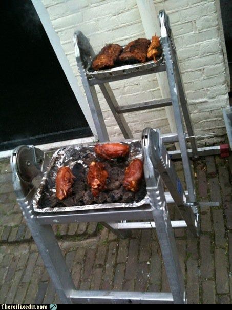 Excuse me, I believe it specifically states not to use the top step. Please expand your barbecue and try again.