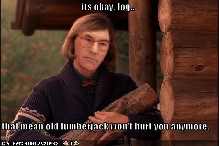 its okay, log.. that mean old lumberjack won't hurt you anymore.