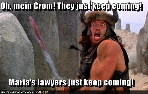 Oh, mein Crom! They just keep coming! Maria's lawyers just keep coming! -Arnold Schwarzenegger