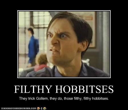 FILTHY HOBBITSES. They trick Gollem, they do, those filthy, filthy hobbitses. -Tobey Maguire