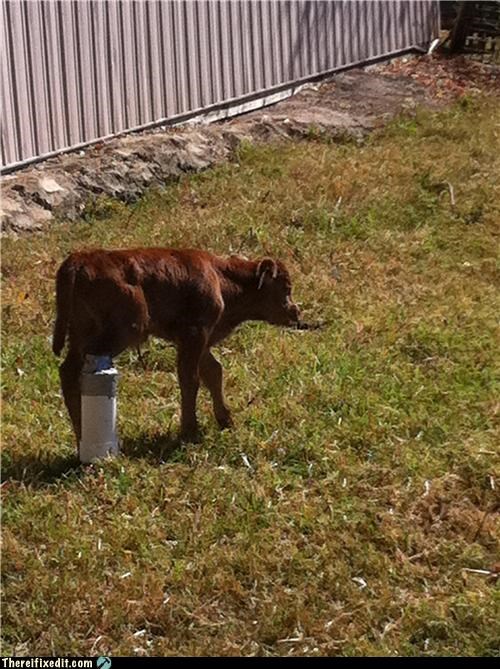 I had a newborn calf break a leg after getting hung up in a ravine. The vet told me how to splint the leg with PVC pipe and duct tape.