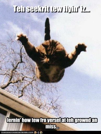 Teh seekrit tew flyin' iz... lernin' how tew fro yerself at teh grownd an miss...