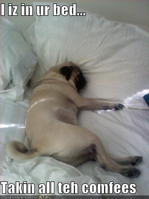 I iz in ur bed... Takin all teh comfees