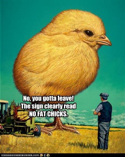 No, you gotta leave! The sign clearly read NO FAT CHICKS.