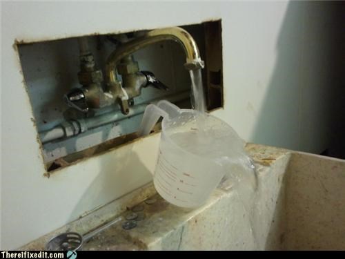 with new wall in place, faucet too far in and water poured on the back splash. found solution-redirect the flow. fountain a bonus!