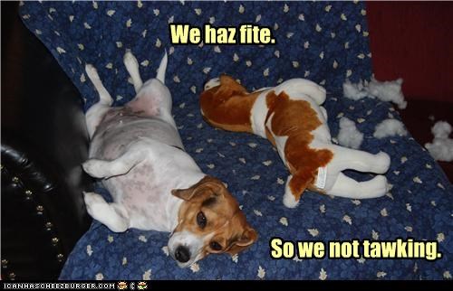 We haz fite. So we not tawking.