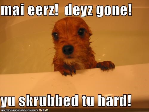 mai eerz! deyz gone! yu skrubbed tu hard!