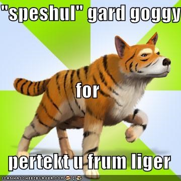 "speshul" gard goggy for pertekt u frum liger
