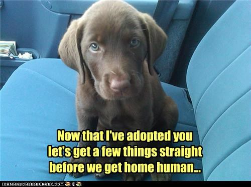 Now that I've adopted you let's get a few things straight before we get home human...