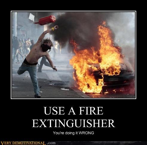 USE A FIRE EXTINGUISHER you're doing it wrong