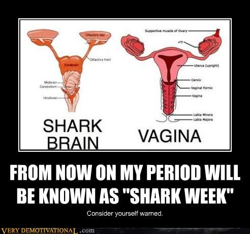 FROM NOW ON MY PERIOD WILL BE KNOWN AS "SHARK WEEK" consider yourself warned