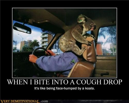 WHEN I BITE INTO A COUGH DROP it's like being face-humped by a koala