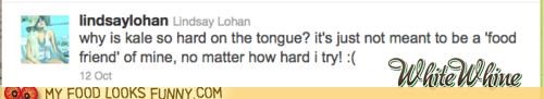 I want so badly to know the Lilo definition of "food friend." Is that a list of foods that certain pharmaceuticals won't make her vomit? You want more celebs don't you?