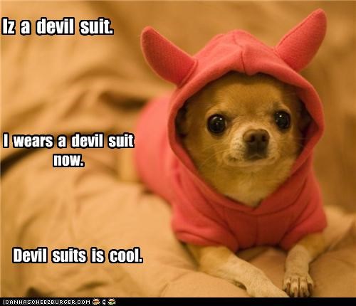 Iz a devil suit. I wears a devil suit now. Devil suits is cool.