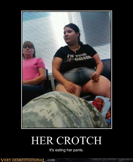 HER CROTCH it's eating her pants.