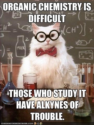 ORGANIC CHEMISTRY IS DIFFICULT THOSE WHO STUDY IT HAVE ALKYNES OF TROUBLE.