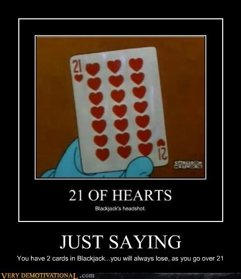JUST SAYING you have 2 cards in blackjack...you will always lose, as you go over 21