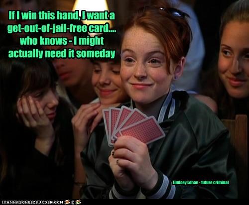 If I win this hand, I want a get-out-of-jail-free card.... who knows - I might actually need it someday Lindsay Lohan - future criminal