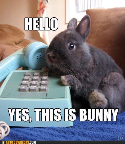 These phone calls will consist mostly of squeals and "Who's a good widdle bunny wabbit, then?" coming from my end. The rabbits will get frustrated and hang up.