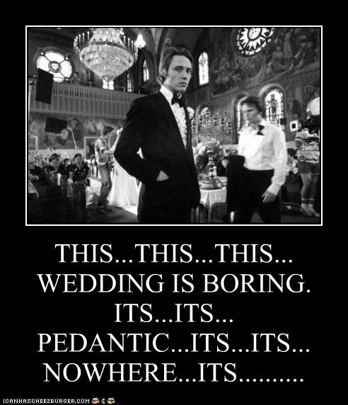 THIS...THIS...THIS...WEDDING IS BORING. ITS...ITS...PEDANTIC...ITS...ITS...NOWHERE...ITS..........