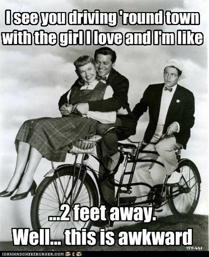 I see you driving 'round town with the girl I love and I'm like ...2 feet away. Well... this is awkward.