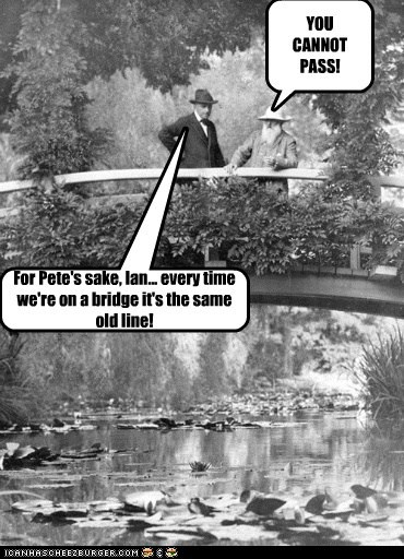 YOU CANNOT PASS! For Pete's Sake, Ian... everytime we're on a bridge it's the same old line!