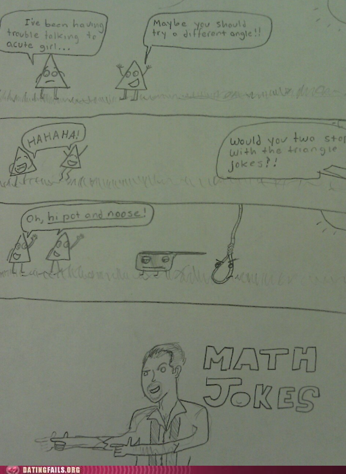 Hi pot and noose want the triangles to stop making math jokes, but