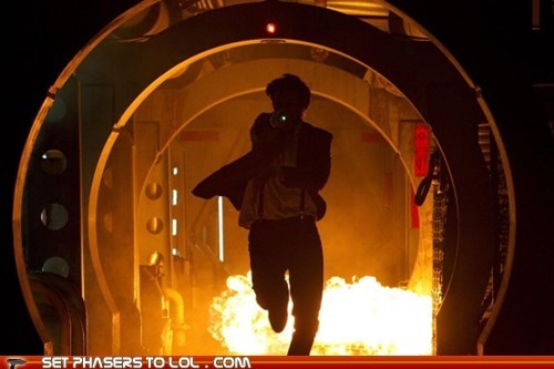 The BBC has released the first image from the upcoming Doctor Who Christmas special. It doesn't really tell us anything other than that The Doctor will run away from an explosion while pointing his sonic screwdriver at something. Well, I'm sold.