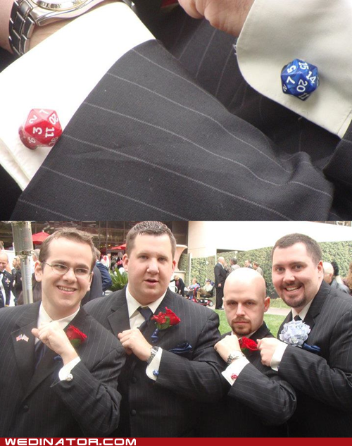 these are cufflinks I made for me and my groomsmen. We all met in a club playing D&D in College