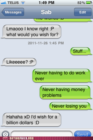 To be fair, having a billion dollars is the same thing as never having to do work ever, never having money problems, and never losing your significant other, if he or she is the type to dig folks who have money.