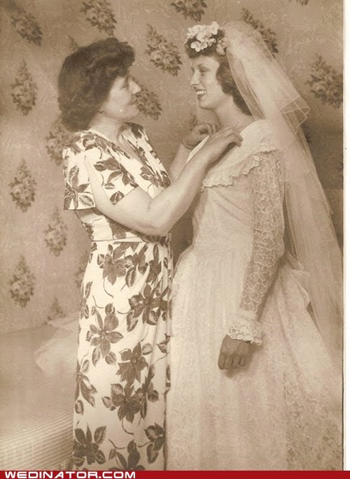 My grandmother on her wedding day in 1946, with her mother she saw this wedding dress in a store adn went home and her and her mother made it by hand