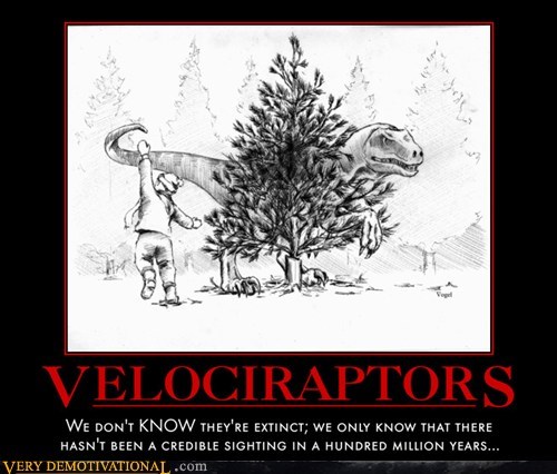 VELOCIRAPTORS we don't KNOW they're extinct; we only know that there hasn't been a credible sighting in a hundred million years
