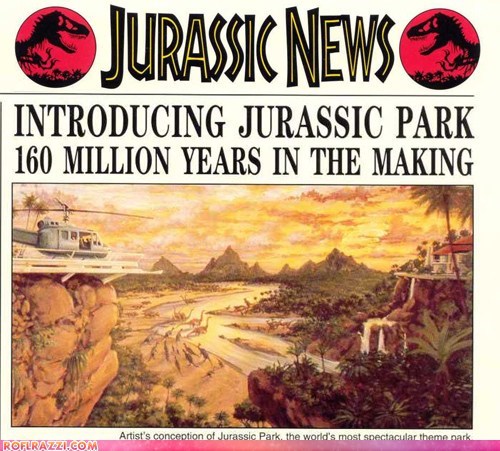Here's a really amazing newsletter for some eccentric billionaire's dinosaur theme park that will be totally safe, thanks to the technical prowess of his morbidly obese son.